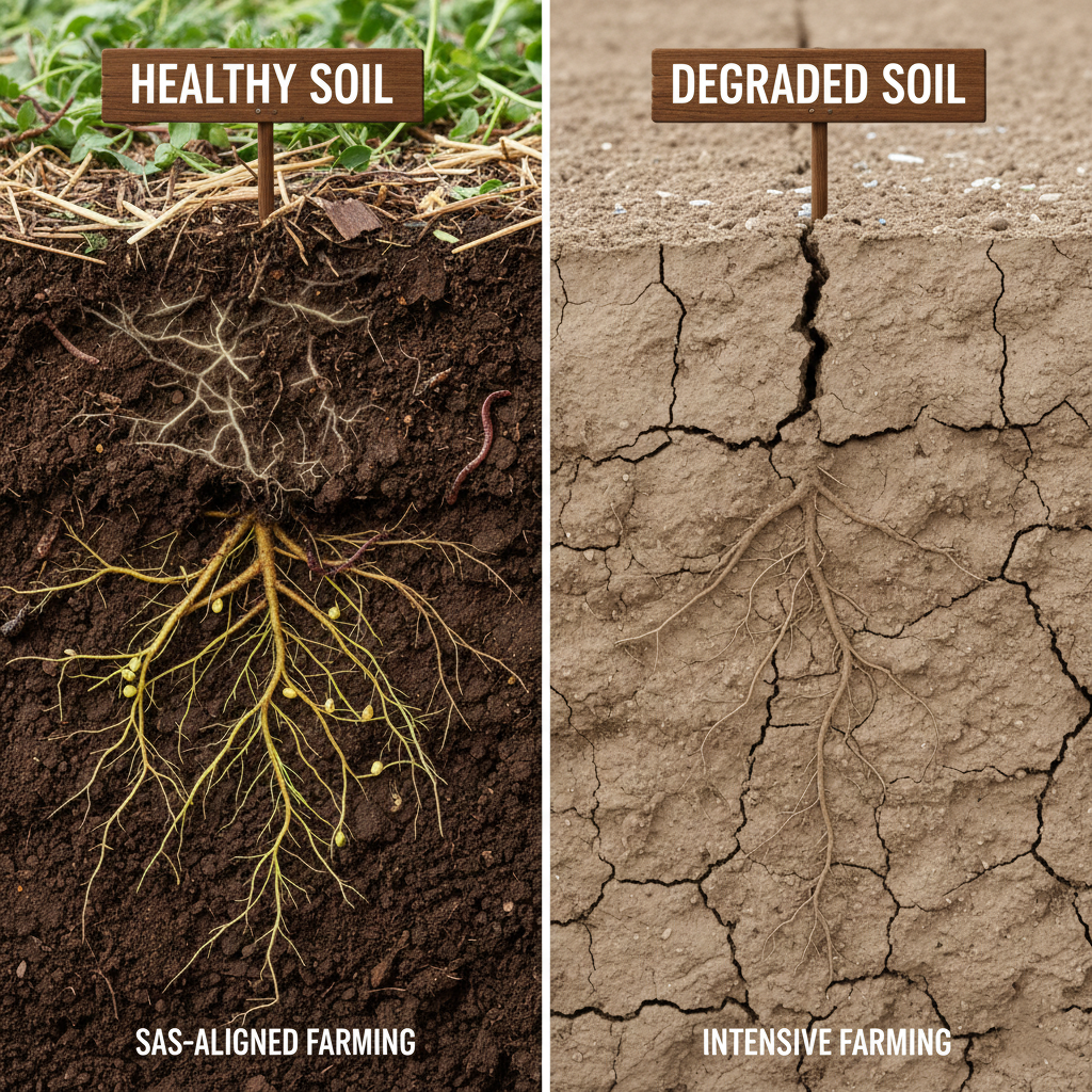 Farmers who transition toward SAS-based practices often notice gradual but meaningful improvements. Healthier soil reduces fertilizer needs. Better water management lowers irrigation costs. Improved resilience reduces crop loss during extreme weather events.